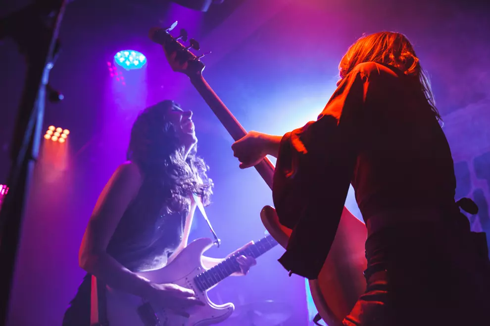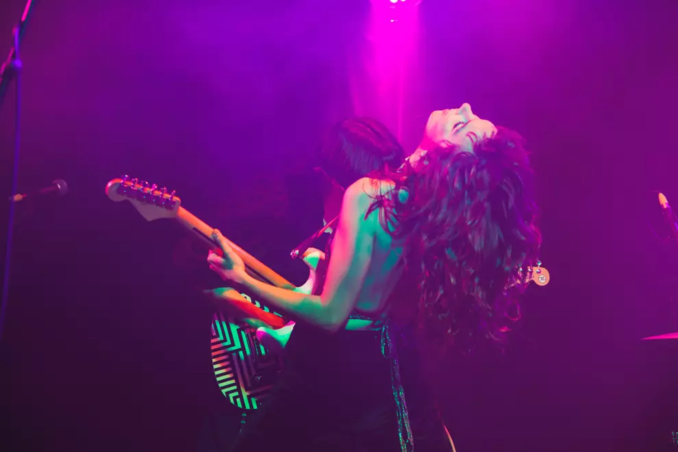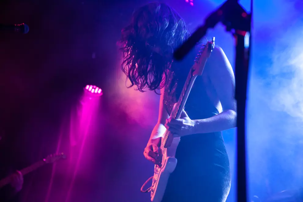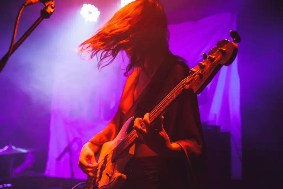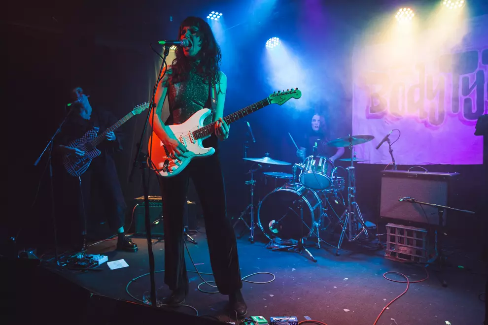 The Sydney-based band are in full swing as they perform another melancholy song, Dry Grass, lyrics like “The colour of the grass didn’t change while I was away/Time only shows in the lines on your face” contrasting with Annabel Blackman's bright guitar chords. McComish and Wilkinson-Derums dance back to back, their energy bouncing off each other. McComish heads over to Blackman towards the end of the song and briefly gets her hair stuck in the tuning keys of Blackman’s guitar. Luckily, her hair isn’t too tangled and the next song, Stingray, blasts through the speakers. McComish jumps in excitement and nearly falls into Cecil Coleman’s drum kit. That was a close one! A sea of heads nod along to the lively, sparkling guitars notes. McComish sings the intro to Ludlow, “Do you believe in karma? Do ya? Do ya...” - and there’s happiness in the air as the much-loved song plays. 2 6 4 is a treat as an encore, reaching a new level of energy to close the night. Body Type are the hottest newcomers in Australia, who wouldn’t want to join in on the fun?