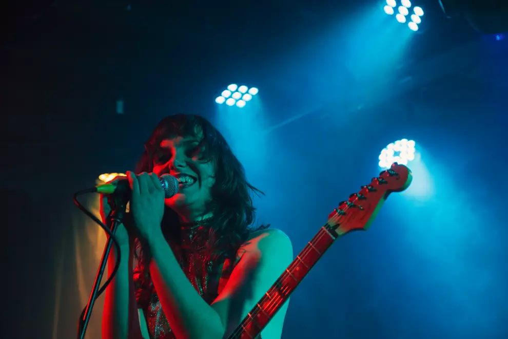 Body TypeWaterfall Person starts the night with a set full of quirkiness and humour. The music itself is lo-fi electronic and child-like pop with transcendent keys. Annabelle Kingston makes a few mistakes throughout her set but laughs them off with quick jokes. Her wittiness isn’t the best thing about her set though, her adorably awkward dance moves light up the room! She finishes with a cover of Ricky Martin’s Livin’ La Vida Loca and forgets some of the lyrics, but it doesn’t kill the joyfulness in the air.
