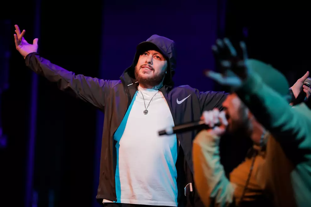 The opening set of the show was a medley of performances from label signees and friends. Up-and-comers like Sydney’s Rebecca Hatch, whose voice seemed to fill the Joan Sutherland Theatre, are ones to watch, as are Mildura’s Philly and their latest signee, Maroubra's Kobie Dee, whose killer storytelling and flow made you take notice.