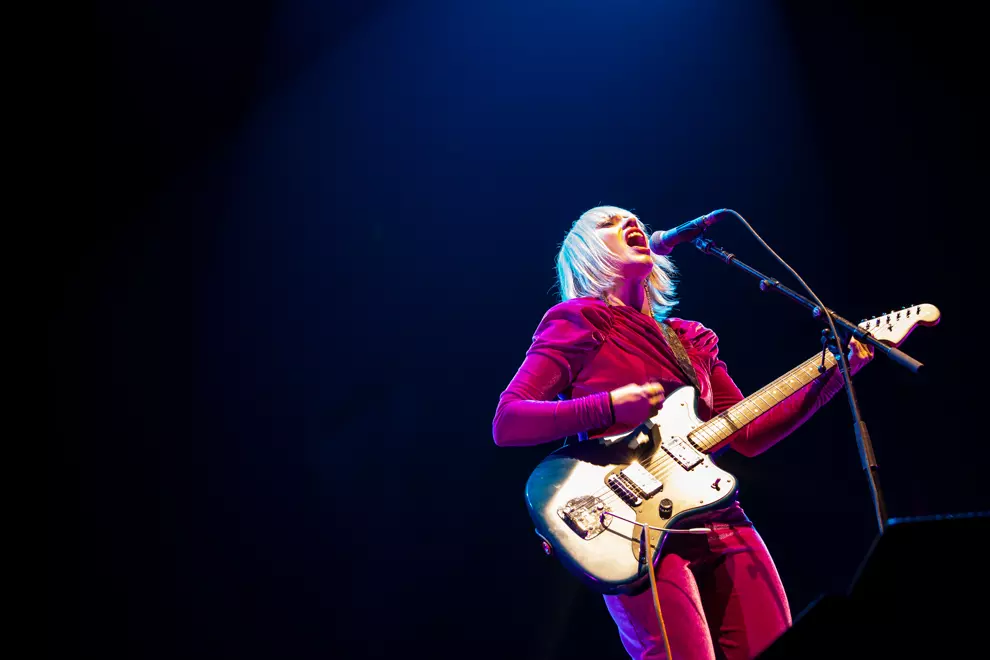 Somewhat of an oddity, although an enjoyable one, Bartley stands alone on stage, resplendent in her bright-pink velvet jumpsuit, and belts out her quirky tunes for the steadily growing Margaret Court crowd. Her look and sound come across as kind of a joining of maybe Lady Gaga and Courtney Barnett, with soaring, almost operatic vocals accompanied by grungy guitar. Her voice fills the huge concrete arena, while the guitar is strictly an accompaniment. It’s a heady and evocative mix.