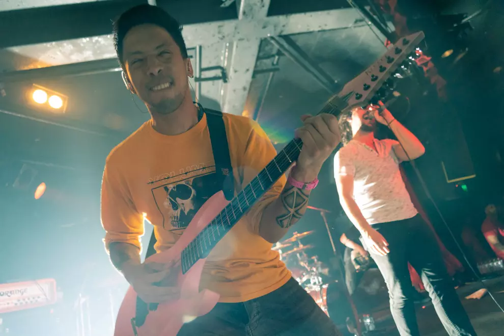 Dance Gavin DanceThe frontman of Belle Haven, David De La Hoz, states that the members of his band are a little "intimidated" by being on tour and opening up for two such technically proficient bands. You can understand why he might say that – however, they need not have worried. Belle Haven jump up on the Corner stage and make it their own for 30 minutes, impressing the steadily building crowd to no end with their big, sometimes three-way vocal harmonies, crushing breakdowns and dynamic stage presence. They are just a touch let down by a bit of a stodgy drum sound, but more than make up for this with the infectious enthusiasm that flows off the stage in neverending waves.