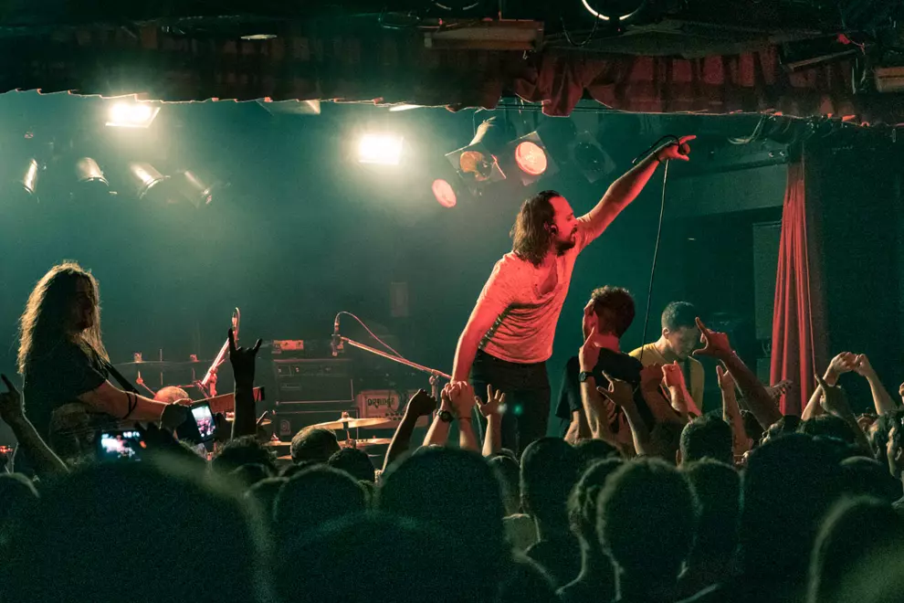 Witnessing a massive, rousing singalong chorus somehow emerge from that maelstrom is even more impressive. It’s a mystery as to how they achieve it, but somehow this band manages to find coherence and cohesiveness in the chaos, songcraft in the insanity, and they get the sold out Corner crowd jumping. Just jumping in polymetric time and, ultimately, in a pole-to-pole circle pit from hell.