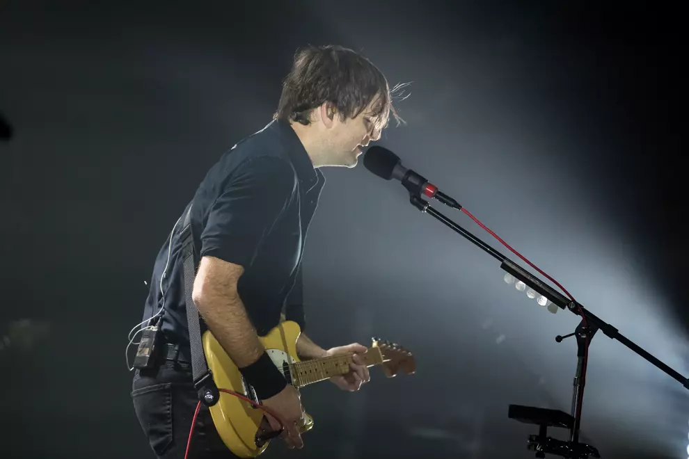 Of course it’s Death Cab For Cutie’s ‘00s songs that had the audience on their feet – something Gibbard gave us permission to do before Kintsugi’s The Ghosts Of Beverly Drive: “This is a rock show. If you feel like standing up and moving around by all means do it, you have our permission.” Songs like Title & Registration, Long Division, A Movie Script Ending and Soul Meets Body were sped up and elongated to keep them fresh and interesting – probably more for the band than for the audience – as Gibbard paced on the spot or turned away to duel with Harmer.