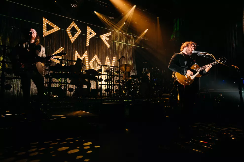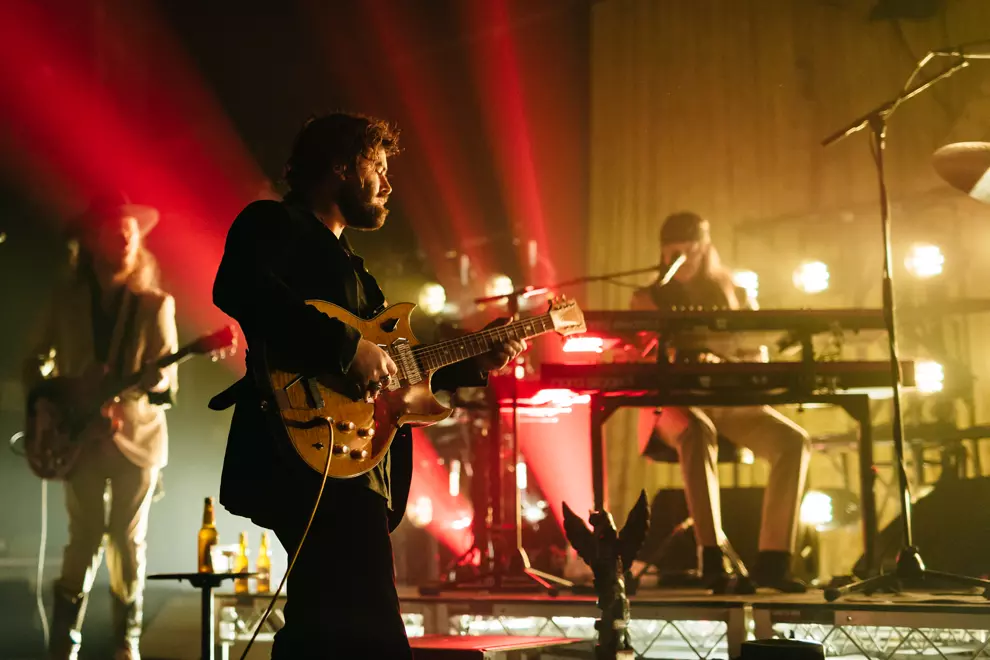 As the number of instruments on stage triples, the Dope Lemon experience begins to unfold. Angus Stone slinks onto the stage dressed in an all-black cowboy outfit that has him ready for both the Nullarbor and the runway. With khaki aplenty, his band of merry men look like Russell Coight styled by Louis Vuitton. Opening with the atmospheric Stonecutters, it sadly features no men chained to boulders or other Simpsons crossovers. It's not until the third song of the set, Marinade, that the crowd well and truly welcome the band. They hum along to the main guitar melody, a surefire sign that you have made it - not that Stone needed any proof. Two dancers strut on stage dressed as Dope Lemon caricatures from the album art.