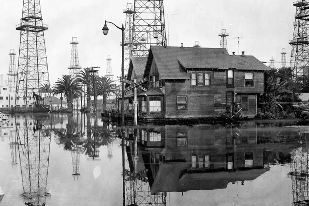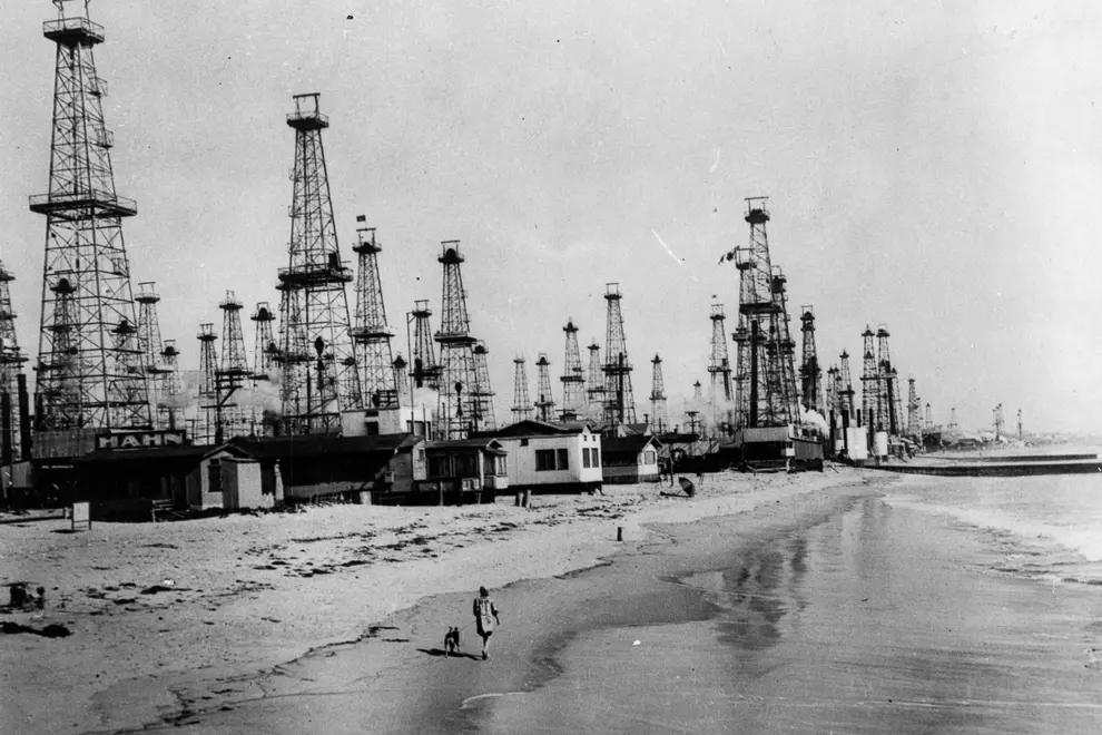 Take a walk through Cali's oil-soaked history below, and see images of Downtown LA, Huntington Beach, Long Beach and Venice Beach from the past 150 years; all infested with the towers and machinery that enabled California to become one of America's wealthiest states.