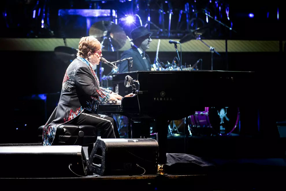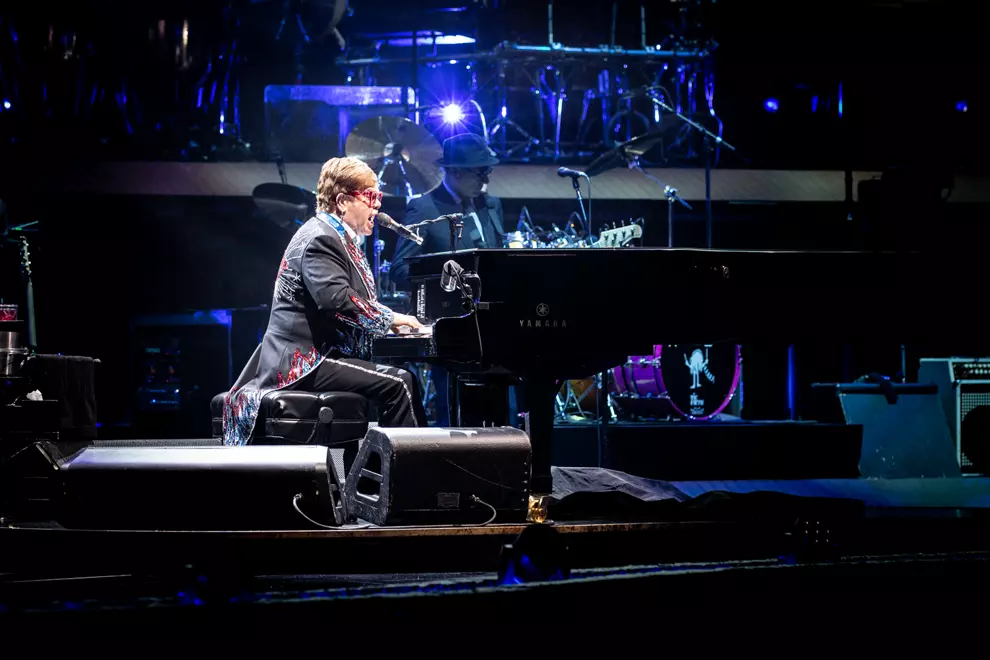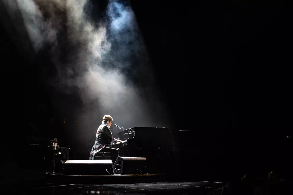 Those assembled who went to see biopic Rocketman almost feel like we know John. As the rest of his backing players return to the stage, John confirms one scene during which he's depicted sitting down at the piano and placing Taupin's lyric sheets on the music stand before melodies - basically a fully formed song - pour out through his fingers. Such is the vivid nature of the stories Taupin creates through his lyrics that a whole world opens up in John's imagination, he says, and then Rocket Man (I Think It's Going To Be A Long, Long Time) takes flight.
