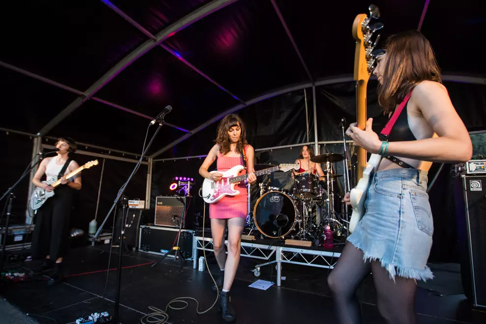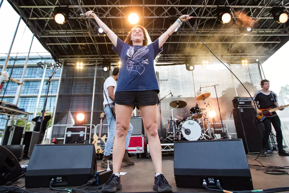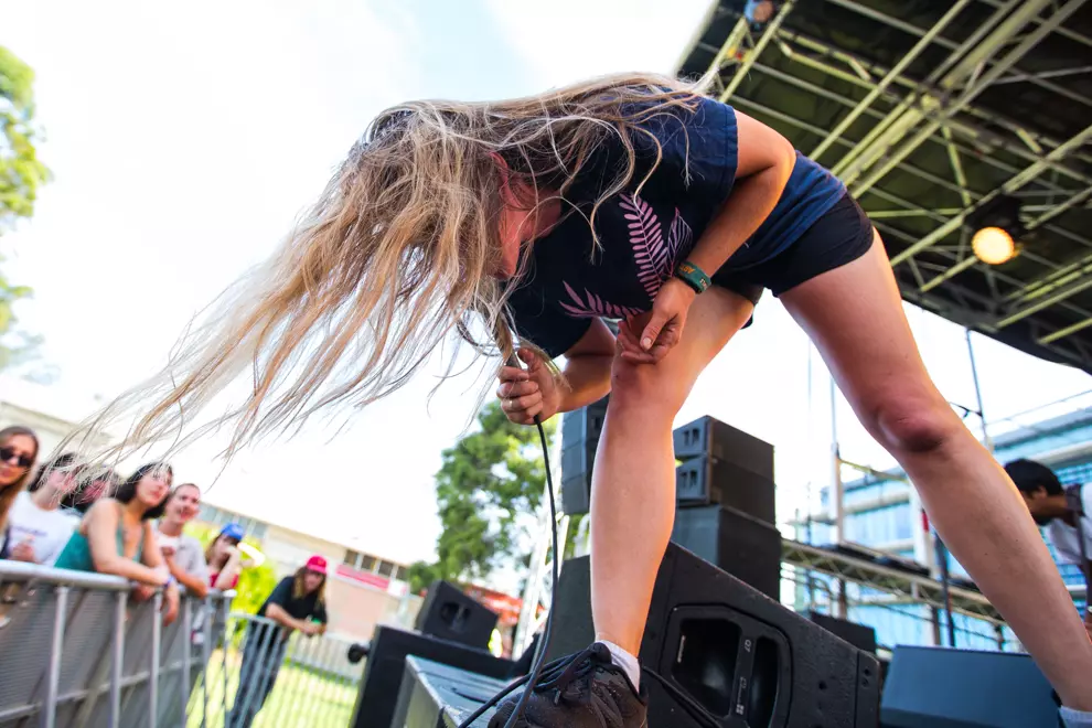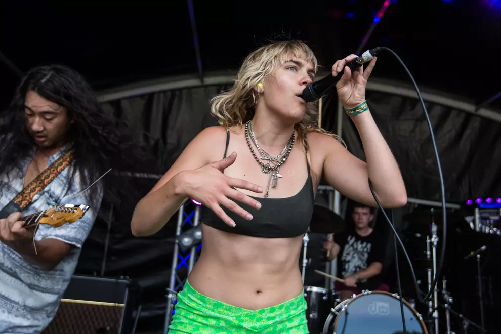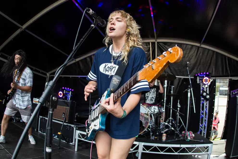 New Zealand’s Miss June put on a proper rock show in the sense that zero fucks were given, and anything could (and would) go wrong. The opening number saw them persist through a broken guitar string and their following song had to be restarted halfway through. Lead singer Annabel Liddell also lost her sunnies and bandana from rocking so hard during the opener. The group persevered and put on a hell of a show without sweating the small stuff.