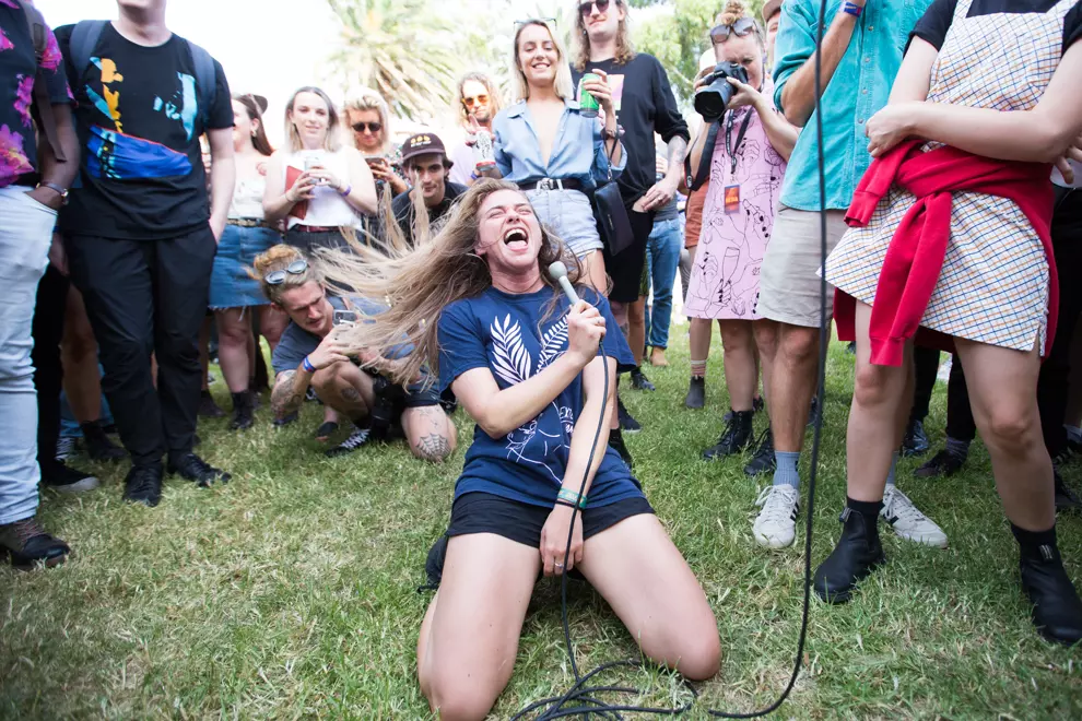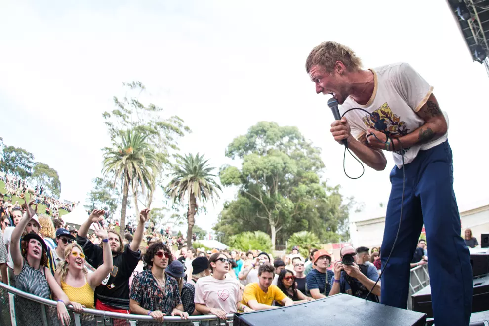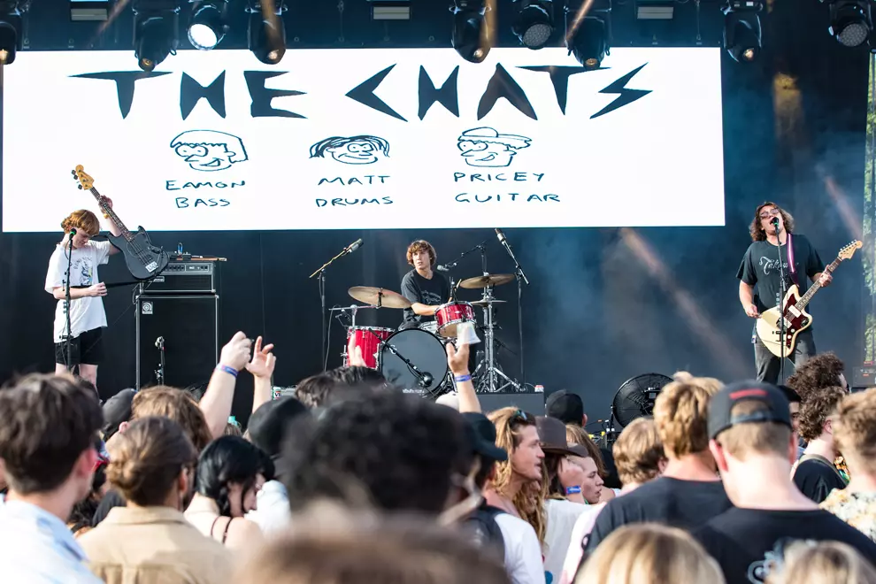Walking onto the main stage to the Rocky theme were three guys who have probably spent more time wagging PE classes than they have inside a boxing ring, The Chats. It only took three songs for the mosh pit to open wide as bodies ran into each other at full steam. Up on stage, lead singer Eamon Sandwith said anything and everything provocative from, “This next song is about doing pingers”, to singing, “I'm the best person in the world/Everybody else looks like a paedo.” These guys had no filter and the entertainment value they brought to the festival was huge. Their hit track Pub Feed felt like a euphoric anthem thanks to the raucous crowd.