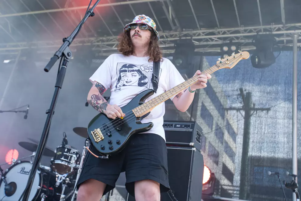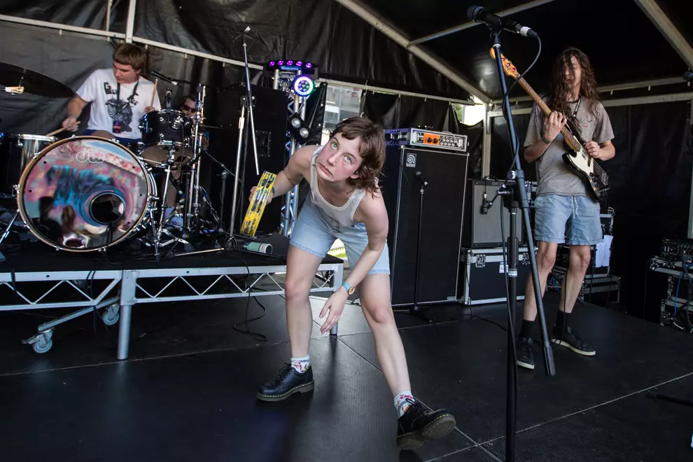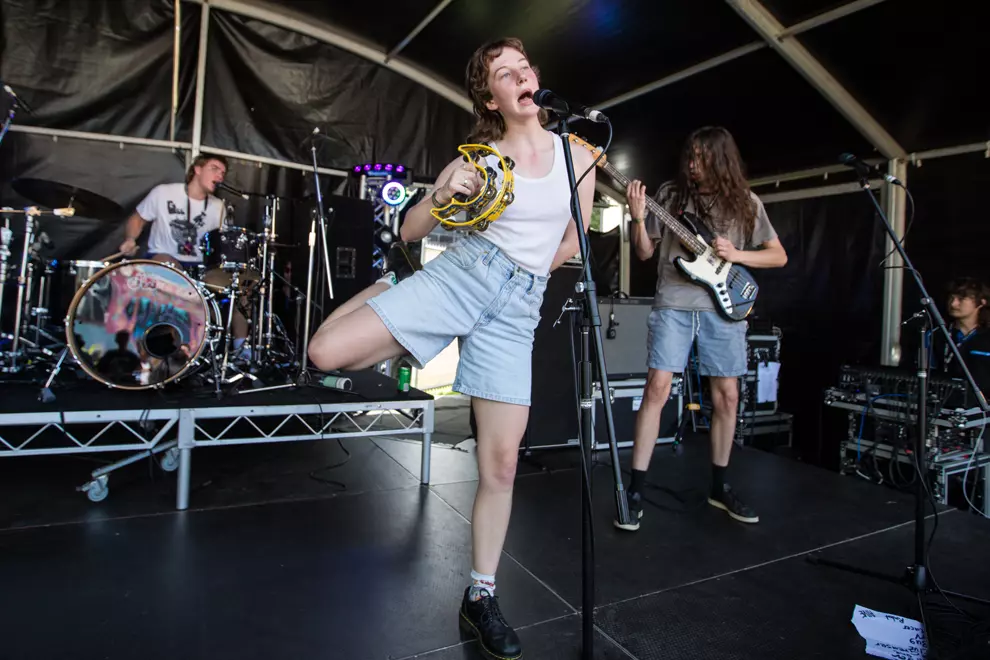 The So Tyred Stage benefited from having a hill that overlooked the stage from afar, providing a suitable alternative for punters who wanted to kick back and watch Mom Jeans. Those up close rocked their heads passionately as the Californian rock group played their angsty tunes.