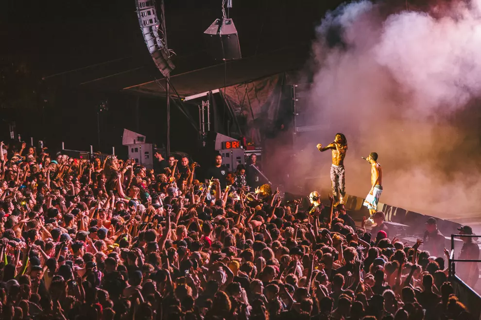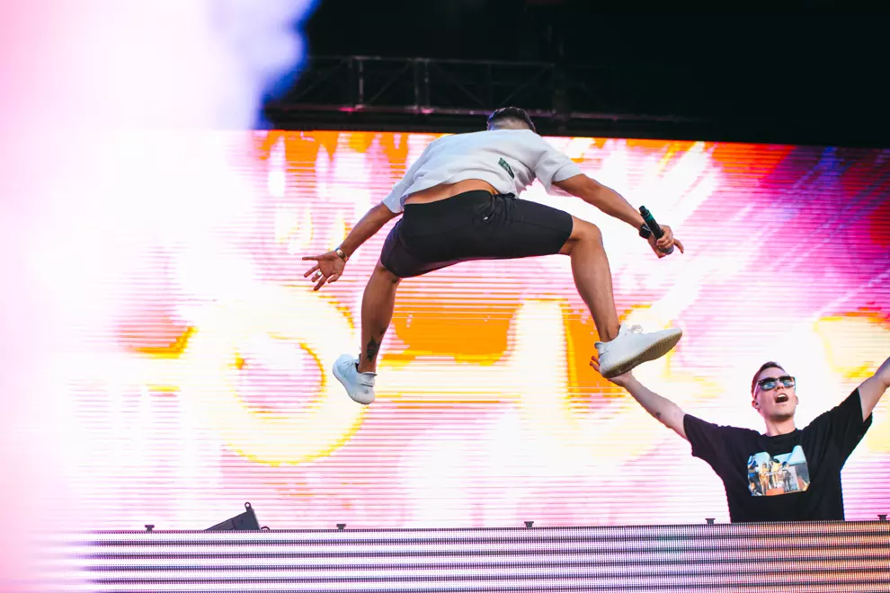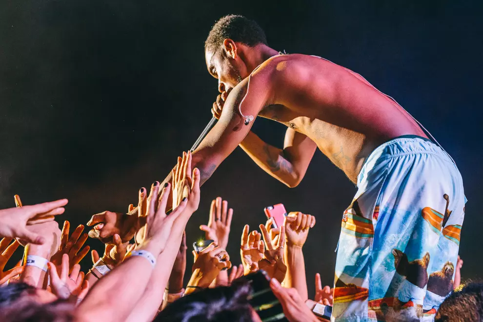 Mura Masa surprises everyone with his live DJ set that includes him belting the drums for hits such as 1 Night, Nuggets and crowd favourite Love$ick. Excitement rises in the crowd as hype-duo Rae Sremmurd blast No Type. Yelling to the crowd to "start a pit", a half-arsed circle forms for the first minute of Black Beatles. A questionable move but all is forgotten as the pair manage to bring up the energy, announcing their whereabouts for the after party and building up the anticipation for what is yet to come.