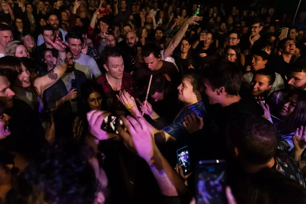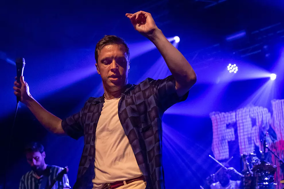They dive straight into some of their biggest hits including Jump In The Pool and Skeleton Boy and the crowd is absolutely loving it. The mosh pit comes alive and feeds off the band’s unwavering infectious energy. Macfarlane may be losing his voice slightly, but he powers through as he holds two microphones between his hands and sings with every fibre of his being. They share a few new songs for us tonight, a couple we’ve heard before and some they’re only test-driving. The new material is infused with disco-heavy grooves and complemented by a live horn section for maximum effect.