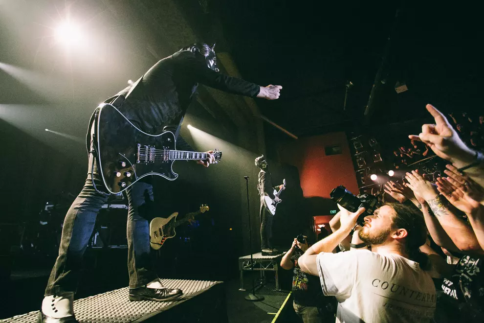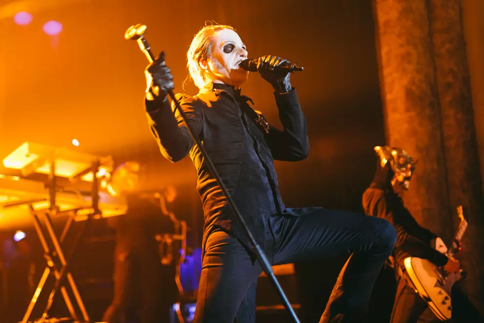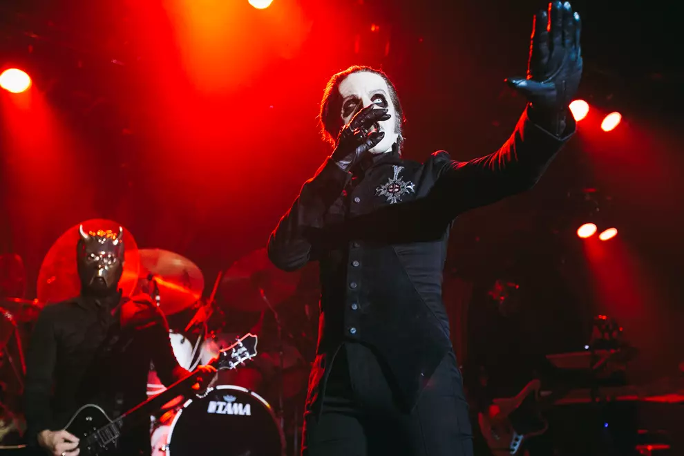 At about the halfway point, it starts to sink in for this spry, 24-year-old reviewer that we are one of the youngest in the crowd by a fair bit, asking the question: where do Ghost really fit in the metal zeitgeist? Riding that thin line between classic rock appreciation/revival and new-school individuality, the Ghost live show without a doubt plays on many of the timeless clichés often forgotten in modern rock shows. It brings back the unashamedly self-indulgent live experience KISS were once famous for, but adds a little extra touch of cheekiness opposed to gross Gene Simmons masculinity. The set rolls on with an extended rile-up of Cirice and the “sappy, mushy” He Is, as singer Cardinal Copia regales. We aren’t short of Cardinal Copia chat at The Tivoli tonight, with everything from the usual crowd amp-up through to describing their track Mummy Dust as the equivalent of tickling the audience's taint. However, the long-form humour from the end of set-closer Dance Macabre, which eventually leads Copia to tell the crowd to “fuck yourselves” (resulting in cheers), is something we can’t put justice to in this format.