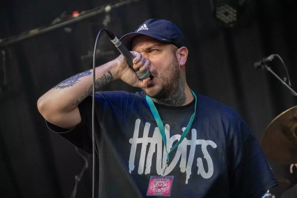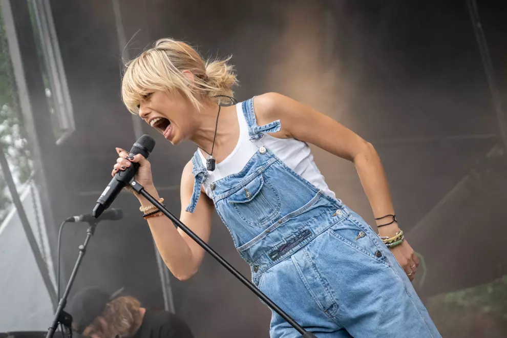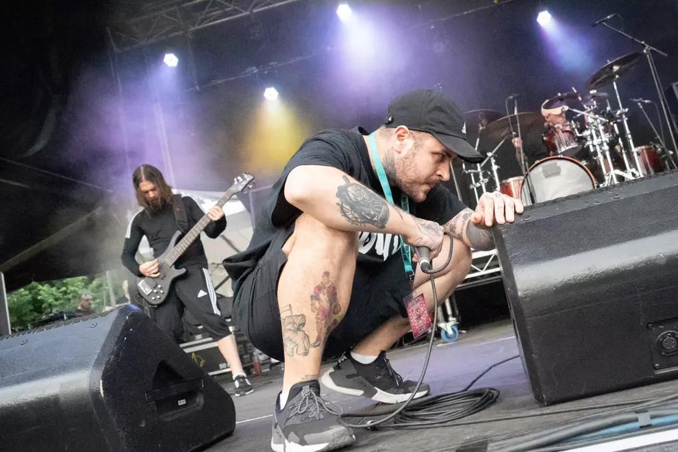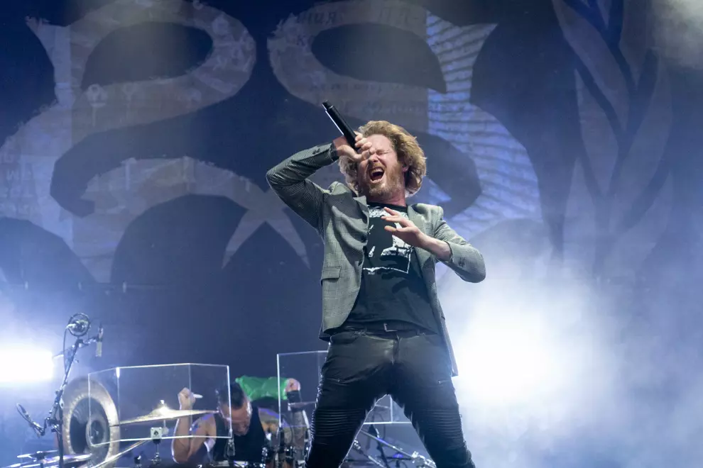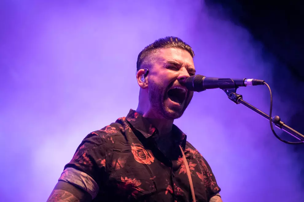 An intense mosh is visible on screen, with others hanging back. The Used lack the more distinctive melodies of Babymetal or La Dispute, but they turn everything up to 11, frontman Bert McCracken noting, “We haven’t got a lot of time.” Soon McCracken is mopping sweat from his brow with a scarf as even the shade can’t quell the strong heat both on stage and off, with punters doing it tough despite the excellent misting stations.