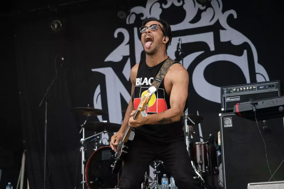 The first rule at The Music is we don’t talk about the weather. The second rule at The Music is... Actually, we really need to talk about the weather. On a day when even Mayday Parade fans don’t want to be Anywhere But Here, it’s harder to get a snow cone than close to the stage, despite the crowds. Props to the organisers for the excellent facilities – the only blip being the demand for more shade.