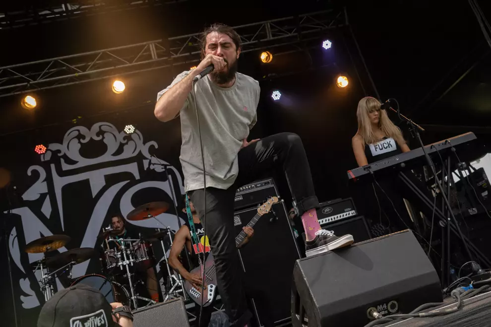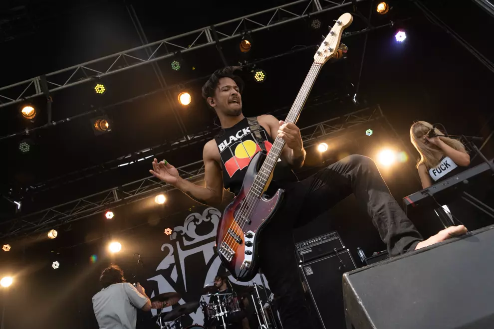 On stage two, singer Jordan Dreyer of Michigan band La Dispute wields a tambourine in a Godflesh shirt while punters can’t take off their own clothes quickly enough – one dude’s Slipknot patch sticking to his sunscreen. King Park resonates with a high level of crowd participation as Dreyer sings, “Can I still get into heaven if I kill myself?” A highlight. He acknowledges the venue is a step up from the abandoned warehouses of La Dispute’s early years, including one memorable one in Melbourne.