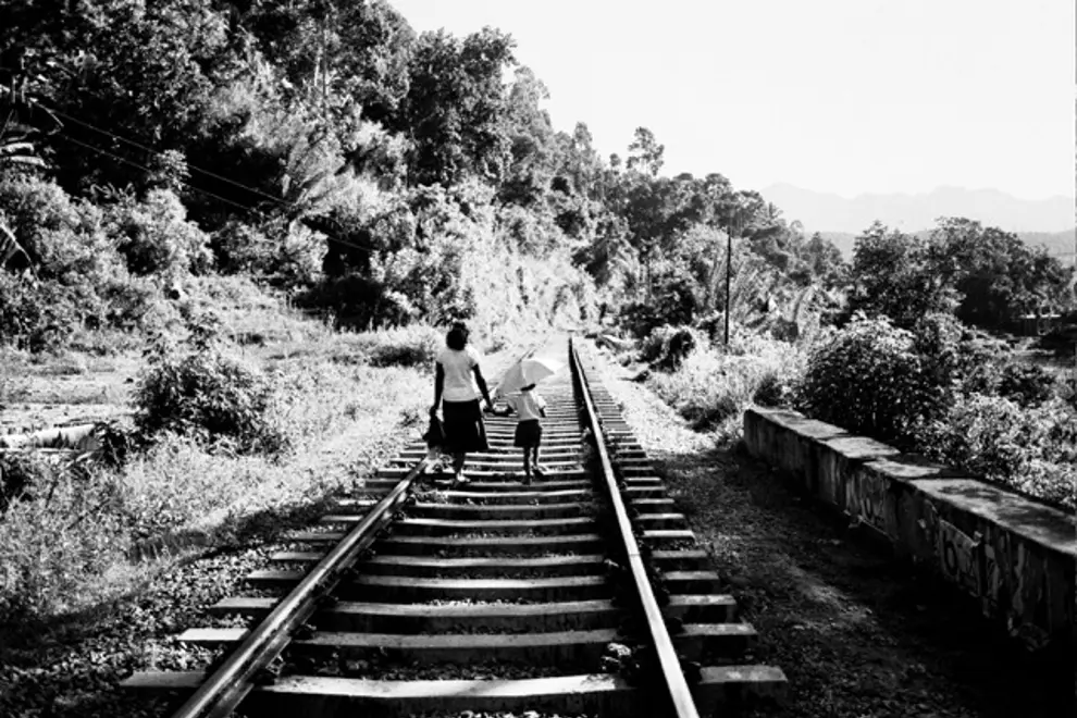 The train tracks a reliable highway for trade in the dense rainforest of inland Sri Lanka.