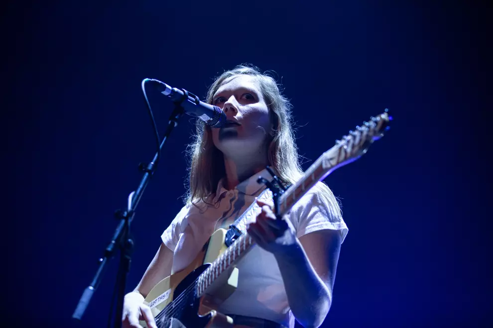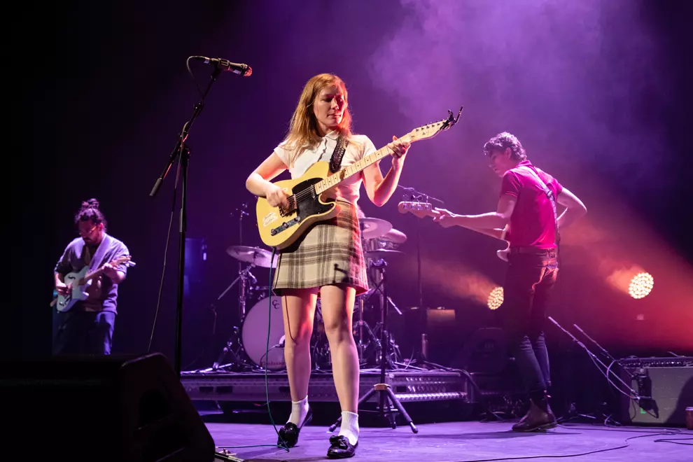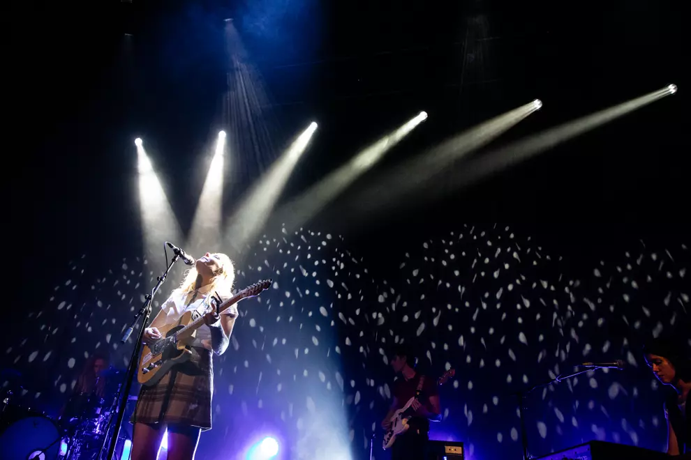 As we look around there appear to be a few underagers in attendance with their mums as chaperones tonight. The stage is fully set up, but Julia Jacklin is yet to materialise. Amazingly, the front section is as rammed as it would be for a rock'n'roll show and the audience gets restless waiting for Jacklin to hit the stage as the advertised start time of 9.30pm comes and goes. Jacklin and co eventually hit the stage closer to 9.45pm, and all is immediately forgiven. Her aesthetic is adorable and Jacklin resembles a schoolgirl rebelling against hem-length regulations in her plaid miniskirt, ankle socks and black formal shoes with bows.