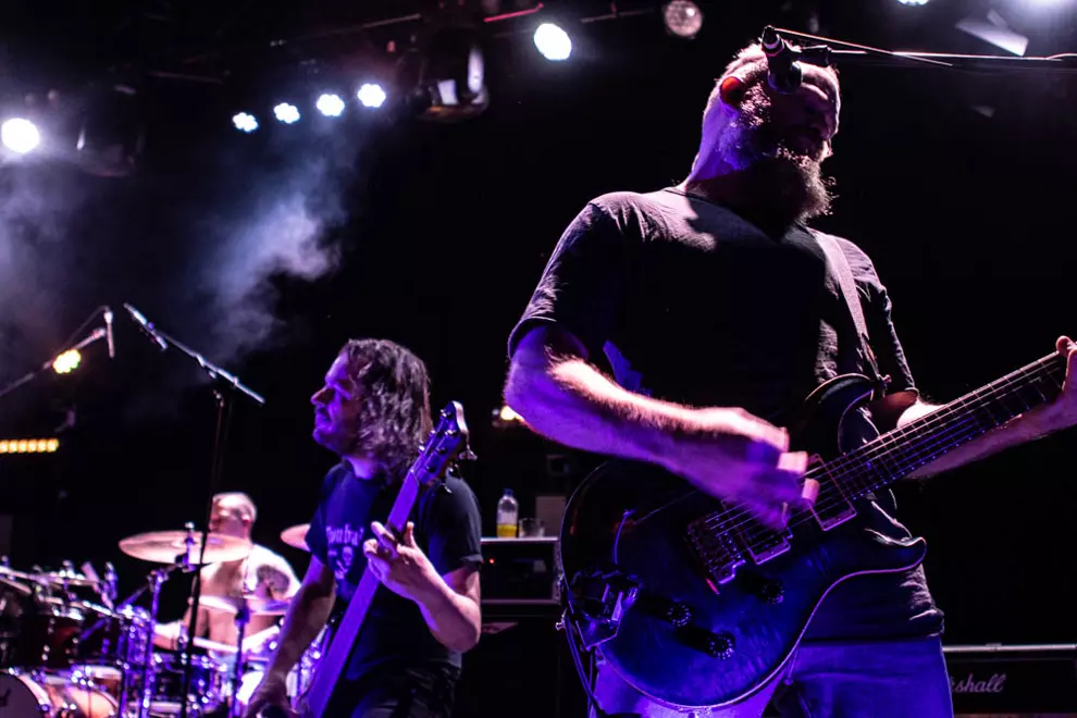 The dichotomy in reception between the old and new songs was obvious – vocalist Ian Kenny struggled to sustain the high notes in Reanimation, and more than a few yawns were visible as Karnivool meandered for seven long minutes through the newer material. Pensive lyrics filled the room and the melodic outro brought cheers and whistles, likely more from loyalty than anything. The energy mid-set was very up and down, Karnivool in recovery through tepid songs before pushing into high drive – senses were, for example, indeed tingling through Goliath before dropping way down into a kind of numbness.
