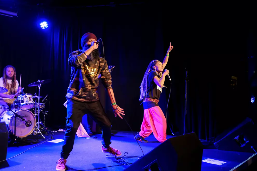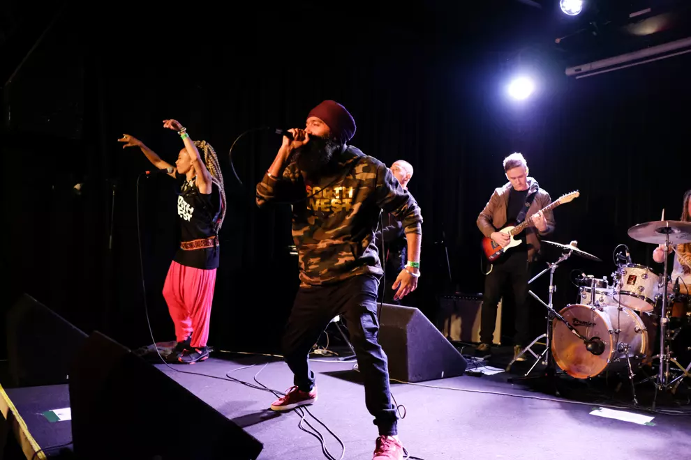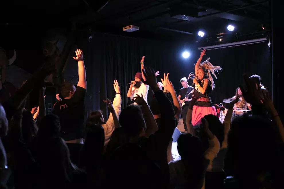 Then came the top biller. L-FRESH The LION and vocalist Mirrah were as unified as ever, opening with their polished Get Mine choreography. The chemistry between L-FRESH and his band showed and watching them perform together felt as though we were looking in on a backyard jam session; the set was raw, but the musicians on stage were well versed in performance. L-FRESH felt the intimacy of the evening too, acknowledging the “living room” feel of the show. That being the case, he felt at ease providing context for his music in the form of insightful interludes — moments of sharing that felt authentic and eloquent.
