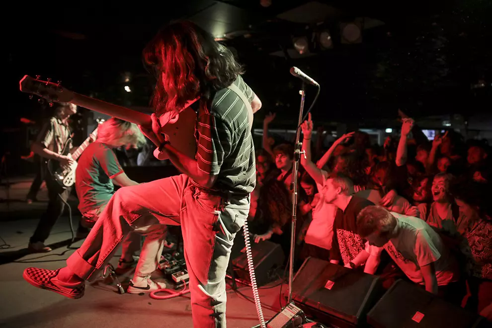 “We’re Back!” declared frontman Harvey Geraghty, who was clearly excited to be playing live again, especially to such a vocal and energetic crowd. Without pause, the band descended into the bass line from their latest track - and one that has appeared on a lot of Hottest 100 lists - Fuzz Jam. The wooden floors of the Bowls Club certainly got some stress-testing under the bouncing crowd.