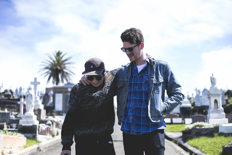 Here’s another beautiful shot that Tatjana took of us at the cemetery. Vivan’s in this one. She heads up Small FRY, her own freelance management and PR business, which takes care of both SAATSUMA and myself. Vivan employs a tremendous amount of attention to detail under the hood of a strong DIY ethic. We both believe the most efficient way from A to B is a minimal production line. That’s why we’re close. It’s thanks to her I’m less jaded and able to focus on making music. Now all we need to do is to get everyone to spell her name correctly.