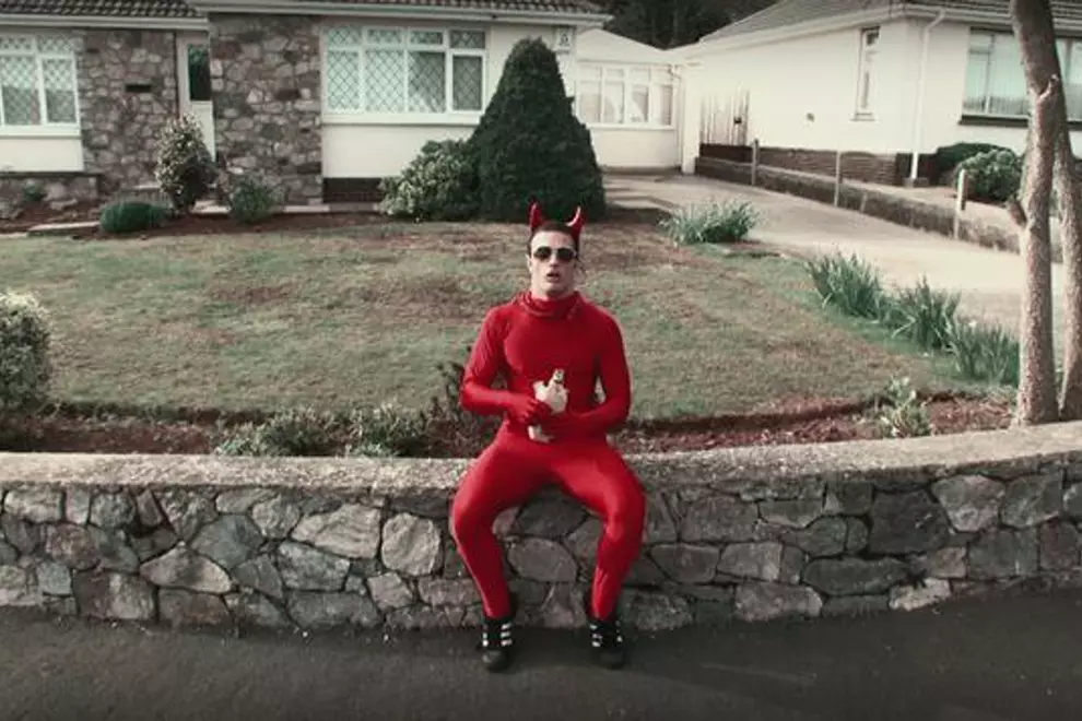 Shot in just one take, our protagonist strolls down a suburban street dressed as Satan and sips from a bottle that is hugged tightly by a brown paper bag. Followed by a group of angels condemning him for turning away the big man, they end up siding with JARVIS by the end of the clip.
