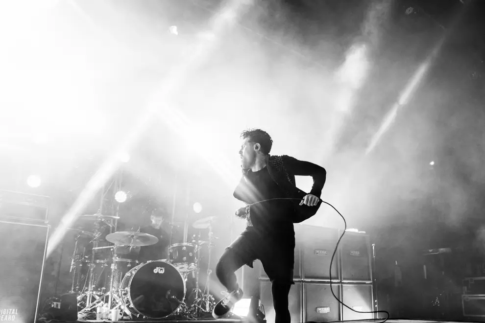 Drummer Adam Carson really plays for his band's music; providing simple yet air tight, flowing drum grooves and patterns that allow the guitar and vocal melodies to soar high above his playing. He's not doing anything crazily technical but nor does he need to in order to create such a great percussive backbone for what are some unforgettable songs. Likewise, the same can be said of bassist Hunter Burgan, who moves around the stage as much as his two other non-drummer band mates do; never once missing a note and providing backing vocal harmonies and shouts to ensure that their set is as well-replicated and as filled out as possible. Guitarist Jade Puget (who apart from that bung start to 'This Celluloid Dream') moves his guitar around his body and takes it all over the stage throughout their set, ensuring he isn't just stationary stage dressing, adding further to the high-octane energy. As for the always moving and charismatic frontman, Davey Havok, the man is as passionate, as kinetic, and as vocally stellar as usual, hitting all the right notes and screams, with the occasional added Havok flair for good measure.