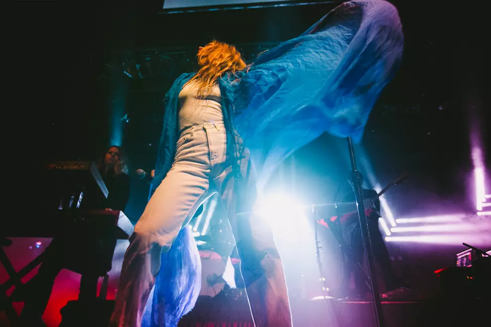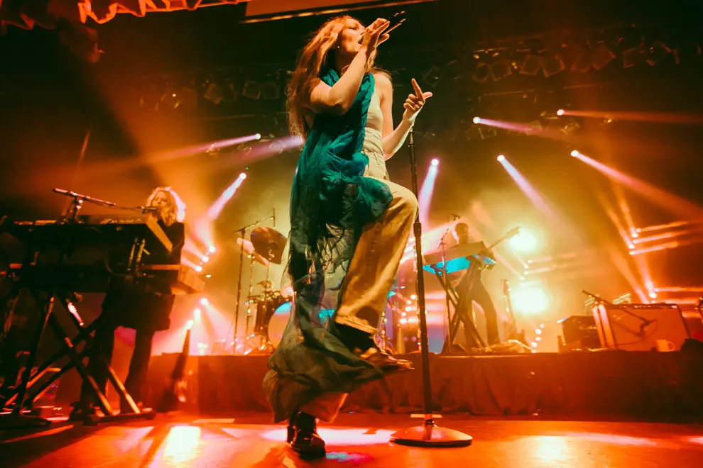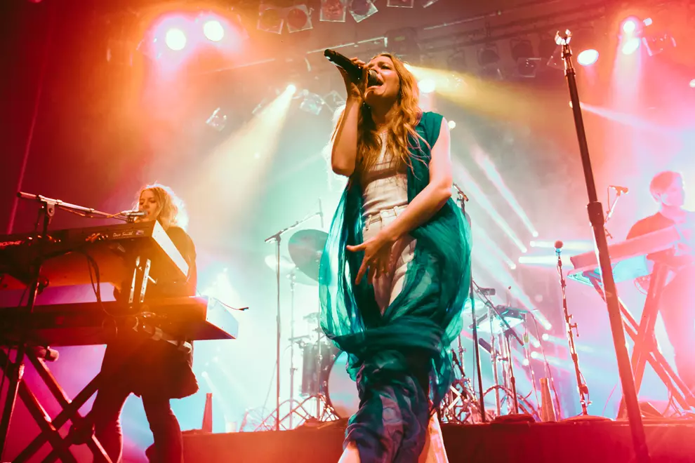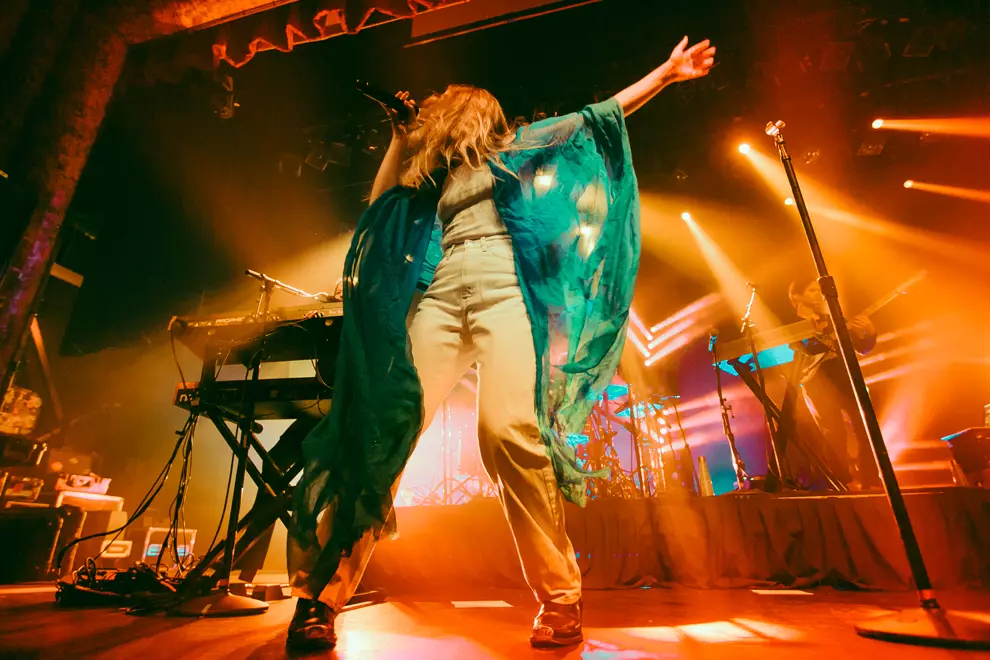 Maggie Rogers’ band make their way onto the stage, all grooving along to ABBA’s Dancing Queen. It’s an appropriate choice, Rogers barely stands still from the moment she makes her entrance.