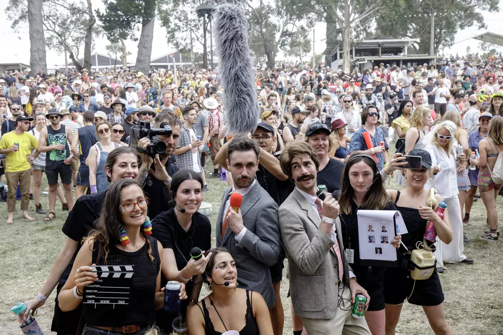 For the uninitiated, The Meredith Gift is a one-lap nudie run in a loop around the amphitheatre. Anyone can enter into the women’s, men’s and all-inclusive heats, then the finalists face off to be crowned champion. As the staff and volunteers mark out the track with a rope, one of them points at a pole, then to a punter. "You’re on pole duty," he says, "if it looks like someone’s gonna hit the pole then you get in the way." The idea of stopping an unwashed penis in full flight isn’t particularly appealing but we take our place along the course and wait, with trepidation, for the race to begin.
