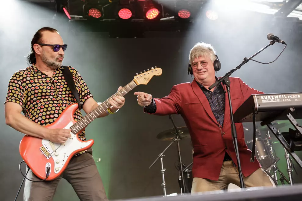 Just when we're in the mode to partay, Aunty Meredith throws in a cool-your-jets curveball with everyone's favourite people's poet Billy Bragg. Paying tribute to Pete Shelley of Buzzcocks, who passed last Thursday, Bragg performs Ever Fallen In Love (With Someone You Shouldn't've). The Sup' listen reverentially as Bragg imparts his wisdom and sings a collection of songs such as Woody Guthrie's Way Over Yonder In The Minor Key (from Mermaid Avenue, the excellent project for which Bragg put previously unheard Guthrie lyrics to music, also recruiting Wilco for the purpose of bringing these songs to life). Bragg's spiel on misogyny, “Put down the power tools, get outta the shed... Let’s not pass the shame into our children," raises cheers. Greetings To The New Brunette (aka "Shir-LEY!") casts some of our minds back to when cool older sisters shared albums to help get us through teen heartbreak. Waiting For The Great Leap Forwards emphasises the positive, with Bragg expressing hope that future generations will incite positive change and further wins over youngsters in the crowd with his vote of confidence. It's Billy Bragg so he gets an encore and it's biblical: as Bragg sings Dylan's The Times They Are A-Changin', the wind changes and in comes a sprinkling of rain.