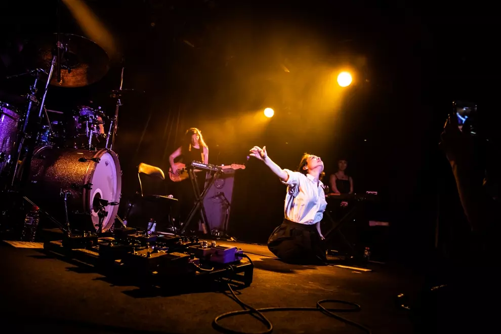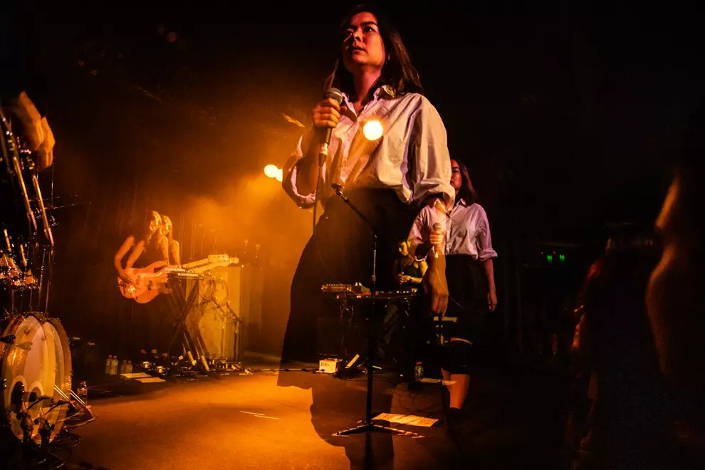 MitskiMoaning Lisa, for those not in the know, is an early Simpsons episode where America’s pre-emptive progressive cartoon daughter awoke one morning to an existential state of distress, and found her only salve and escape was through playing the saxophone. Obvious parallels can be made with tonight’s opener Moaning Lisa, a Canberra-based, riled-up rock four-piece and 2018 triple j Unearthed feature artists. We’re only a few songs in and are already being corralled with period flow banter, Mitski adoration and a pummeling of fuzzy '90s grunge riffage. An unabashedly cathartic and feminist set, it’s obvious they really enjoy playing together. Second last song and sly Sleater-Kinney homage Carrie (I Want A Girl) is a hell-raiser and highlight.