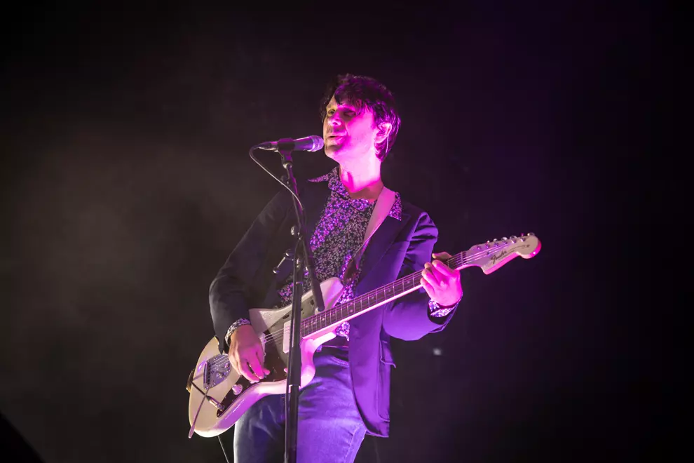 Cut Copy quietly exist at the centre of the Venn diagram of indie rock and dance and, like the headliners, play a brand of ego-free stadium pop. Tonight’s set draws heavily from their 2008 album In Ghost Colours, which makes sense as it is one of the best Australian albums of the last 20 years. Sun God, from its follow up Zonoscope, is dedicated to the recently deceased DJ and producer Andrew Weatherall, and gives a release from the lymph-system workout that the rest of their set provides.
