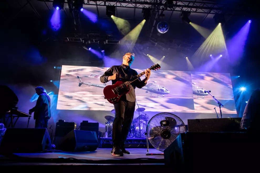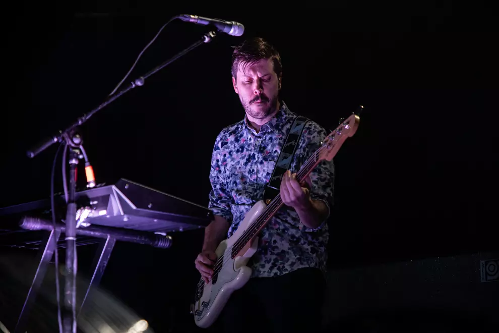 After visiting the hand sanitiser station on the way in, I am scolded by a friend for arriving too late to see Confidence Man whose set he describes with the gesture of a chef’s kiss. Cut Copy quickly evaporate any feelings of disappointment. The shimmering acoustic guitar and insistent bassline of Feel The Love booms through the venue and it is instantly apparent why they are the perfect band to be opening for New Order.