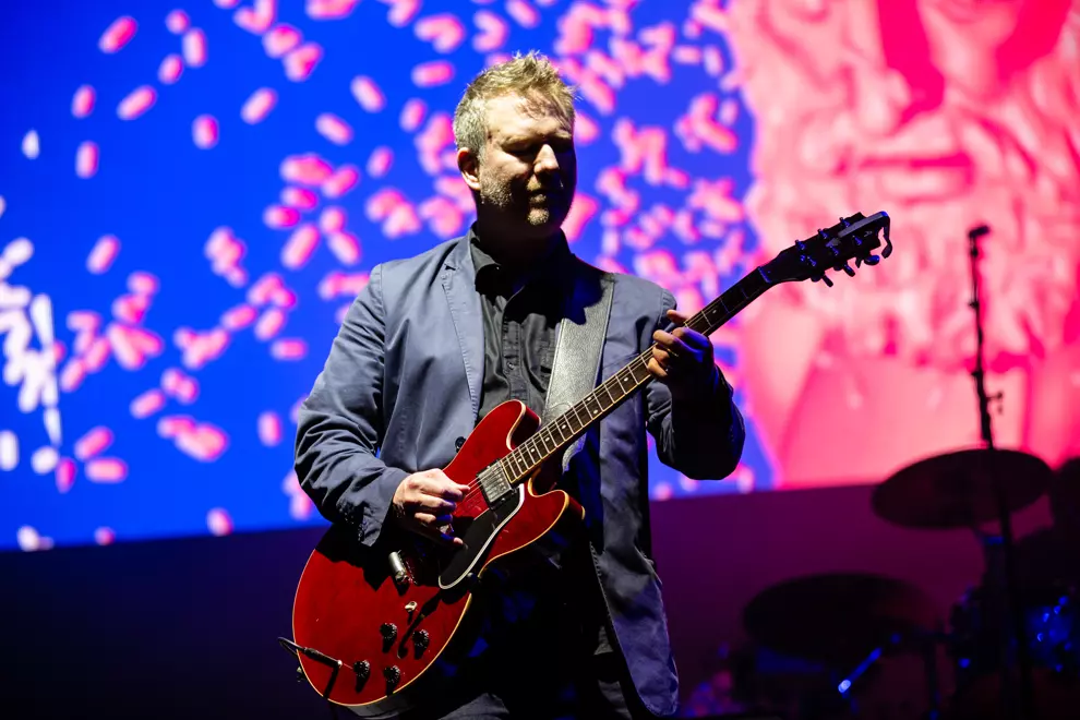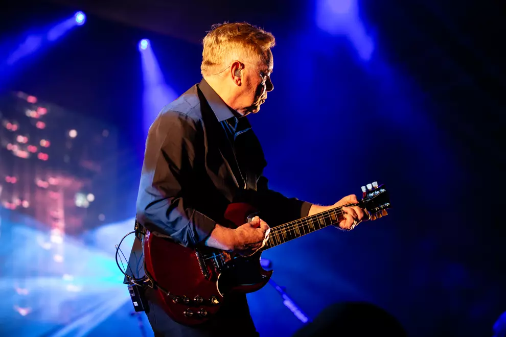 “When we started out most bands were placing an emphasis on guitars and power chords at the time,” singer and guitarist Bernard Sumner told the BBC in the mid-90's documentary series Dancing In The Street. “We thought we’d place the emphasis on the drums.” But tonight, the band reverts back to its rock origins with many of the songs being guitar-driven. Right from set-openers Regret and Age Of Consent, songs are given arresting video projections that play out in triplicate on the back of the stage. Cityscapes and digital artwork blend to accentuate the songs' nostalgic power and sense of timelessness. It’s a recurring theme throughout the night, and one that empowers many, especially World (The Price Of Love) whose iconic music video featuring ageing rich holidaymakers adds layers to its themes.