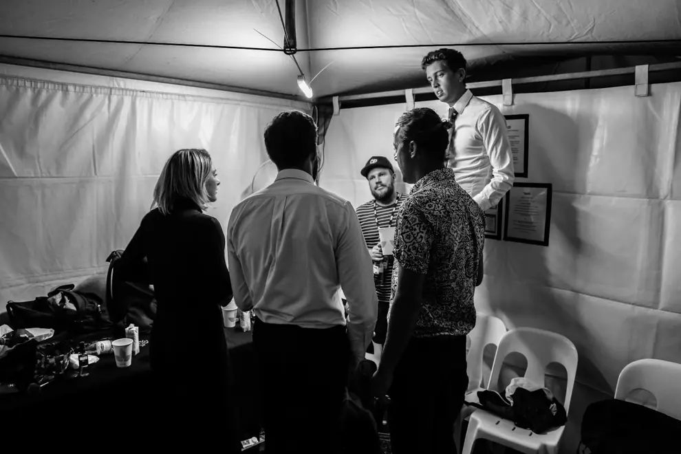 I went for all black and white as this captures emotion the best. Most backstage shots capture some sort of emotion whether it be excitement after the show, nervousness before the show, seeing a partner after a long tour, being hung over as fuck... you see it all."
