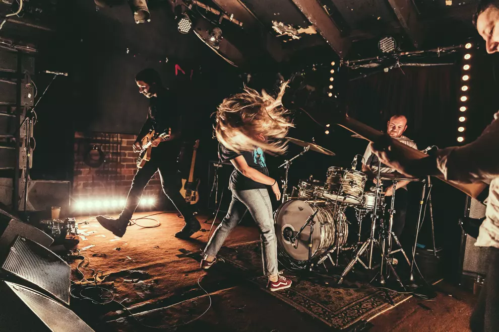 The clear star of the show – the one who elevates Press Club above so many of their contemporaries – is singer Nat Foster. She’s an electrifying presence with a big voice and a wild mane. She’s constantly shaking her head and pushing her hair around as if she doesn’t know what to do with her hands while expressing so much emotion. It’s the perfect visual accompaniment to her powerful howl.