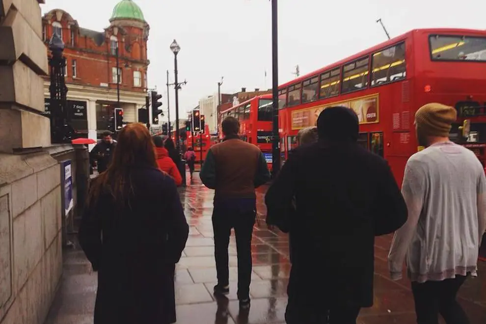 Wet winter's morning in London heading out for caffeine.