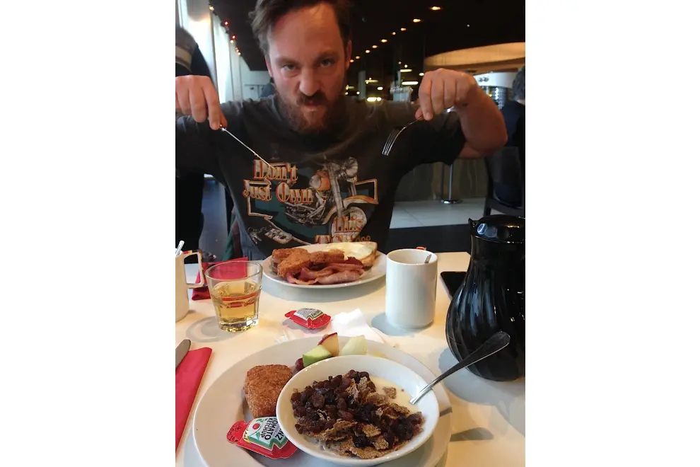Blurry eyed and scrambling for clean clothes amongst a dark clash of suitcases, we'd scurry into the venues as soon as they would let us in. After living in a bus, we'd need to shower before we did anything. Those showers were life altering. Breakfasts were always huge, warm and comforting. This was mostly to compensate for the cold but I remember a waiter looking at me in absolute horror after ordering a bowl of granola one particular morning..