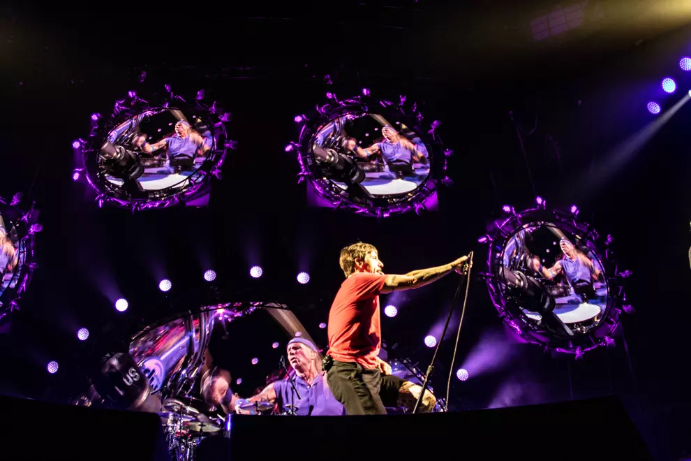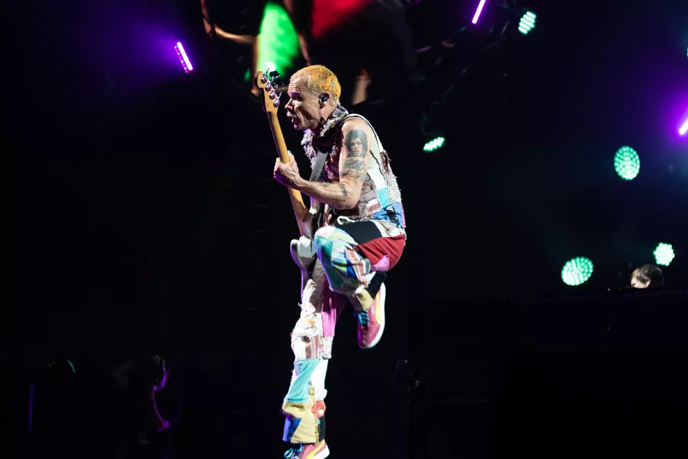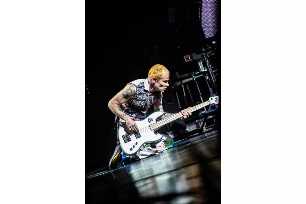 The crowd roared, stamped and stomped for an encore, and Flea delivered a handstand walking across the entire stage before grabbing his bass and shaking his hips.