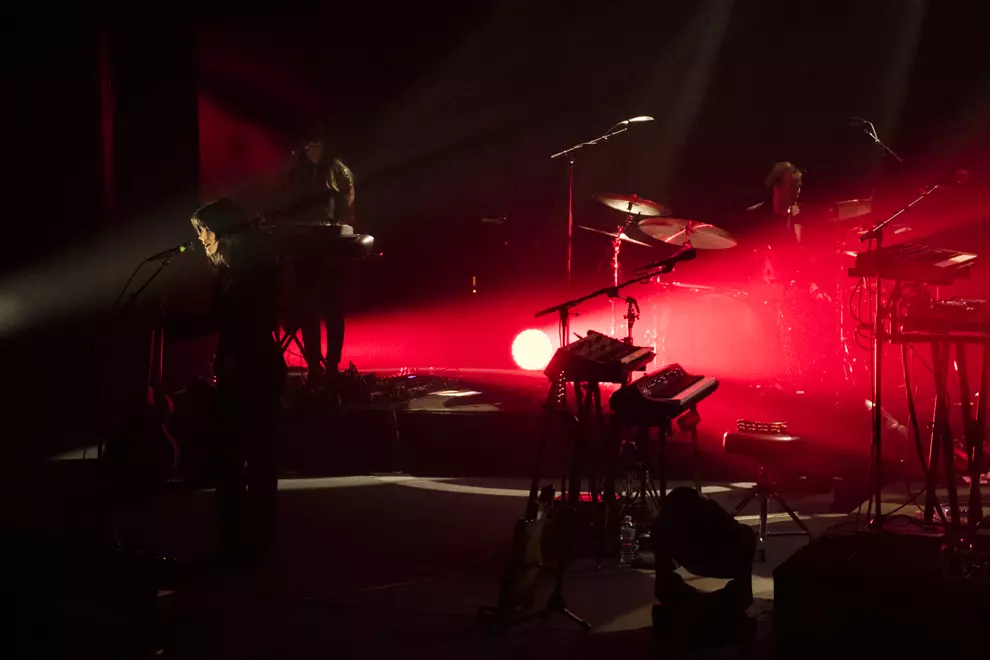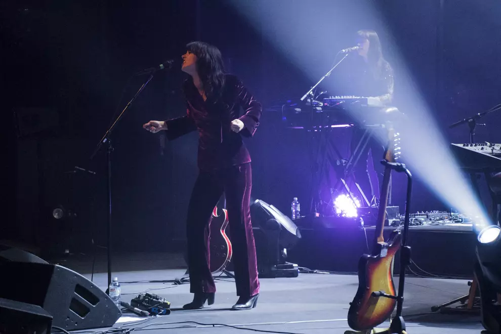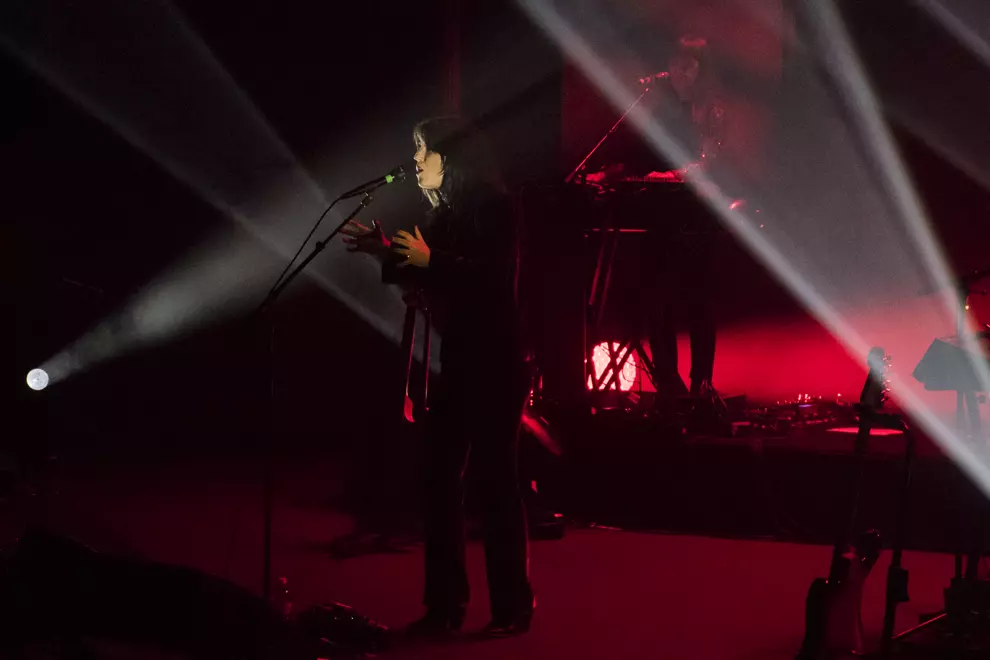 Sharon Van EttenNew Jersey-born singer-songwriter Sharon Van Etten emerged onto the Joan Sutherland Theatre stage dressed in a maroon velvet double-breasted suit, a picture of power and grace. Opening with Jupiter 4, she held court under red light as white strobes flickered. At quieter, poignant moments, Van Etten expressing vulnerability, curdled emotion, she was illuminated by a spotlight, which drew our attention to only to her powerful vocals, backed by haunting, pulsing synth.