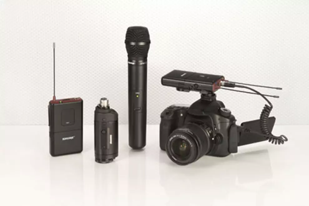 Shure's new FP Wireless System is going to find a happy home on many video cameras, especially with the advent of DSLRs – the latest media-capturing miracle, a camera that also doubles as a video recorder. One of the problems with point-and-shoot video is that there are too many changes in the soundtrack that basically don't work. The solution is simple: find a way to get the sound of a stationary mic into the recording device that's attached to your video camera. There are, however, two problems – power and weight. A typical wireless mic is a box weighing a kilogram or two and is inappropriately large for modern video cameras. Additionally, it needs power and the camera is usually mobile and you don't want to be shooting with the constraints of a power cable and some tech guiding you through 100 drunken patrons while you stumble to the ground. In the FP Wireless system, there are two options. Option one is two small cases modelled on the Shure SLX beltpacks, one the transmitter and the other the receiver. The receiver has several mounting options. The receiver only weighs 81 grams and two double AA batteries will get you out of trouble either end. Option two lets you attach a small transmitter to any conventional dynamic mic. In this way you have instant wireless mic without any extra expense. The wireless system features automatic channel selection and everything that needs adjusting is pretty straightforward.