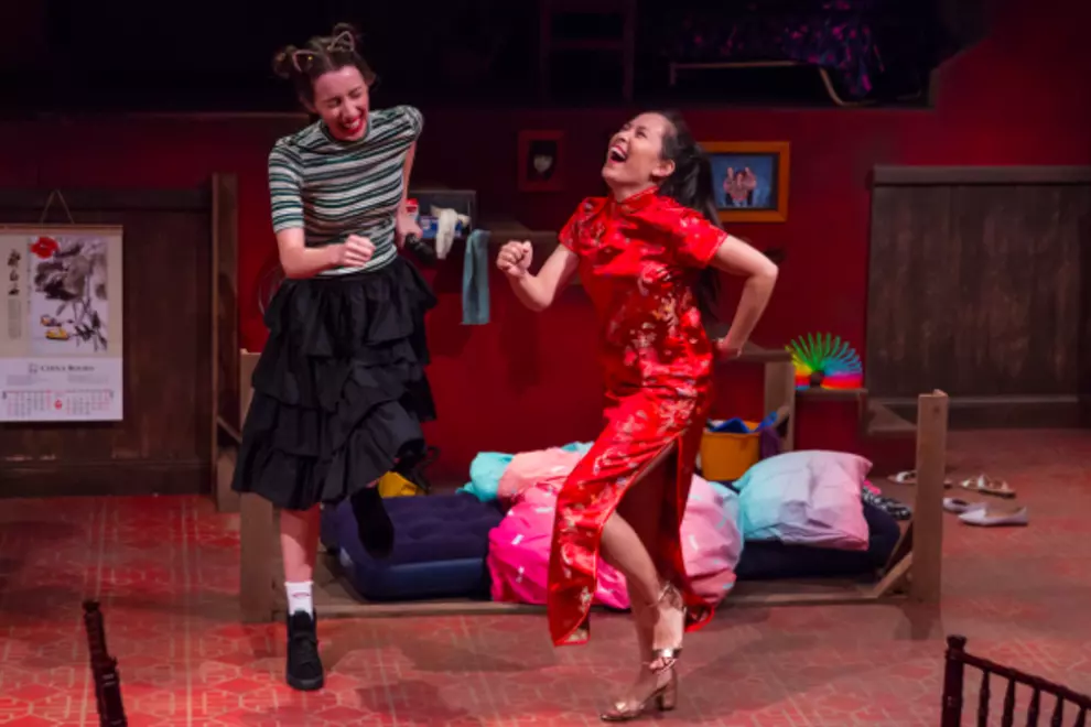 The performances in this production are close to note-perfect. Courtney Stewart's Mei imbues her teen character with a relatable adolescent quality, nailing the comedic timing in her whingy but also high-intensity emotional teen-state. The play presents elements of a coming-of-age tale too. Mei's white BFF, Katie (played endearingly by Emily Burton) obsessed but respectful of Asian culture (she will change your universe with her Miyazaki knowledge) adds a nice touch to the core of female relationships in the play. Alex Lee also masters Zoe's awkward humour, skillfully realising this character's determination for autonomy over her career and body. Hsiao-Ling Tang is magnetic - she delivers Pearl's brash candour with self-assurance, but also conjures the inner trauma that Pearl conceals behind closed doors.