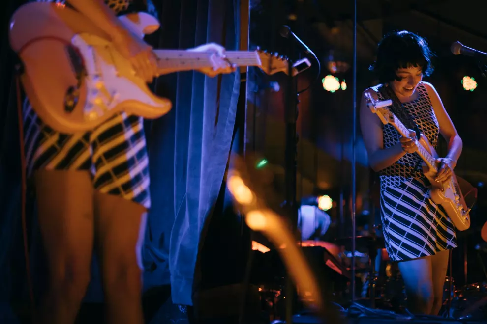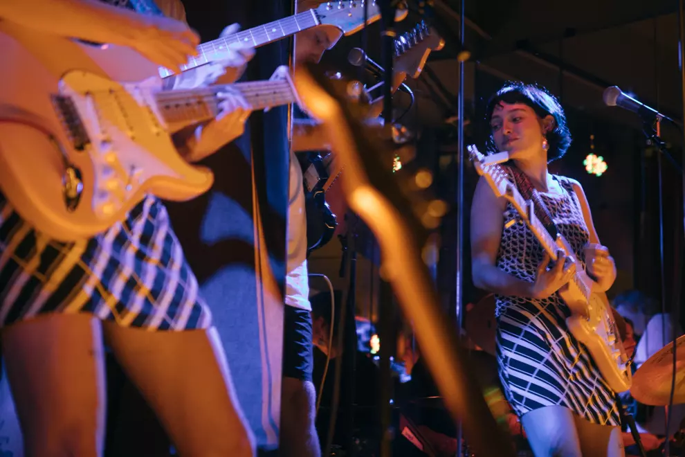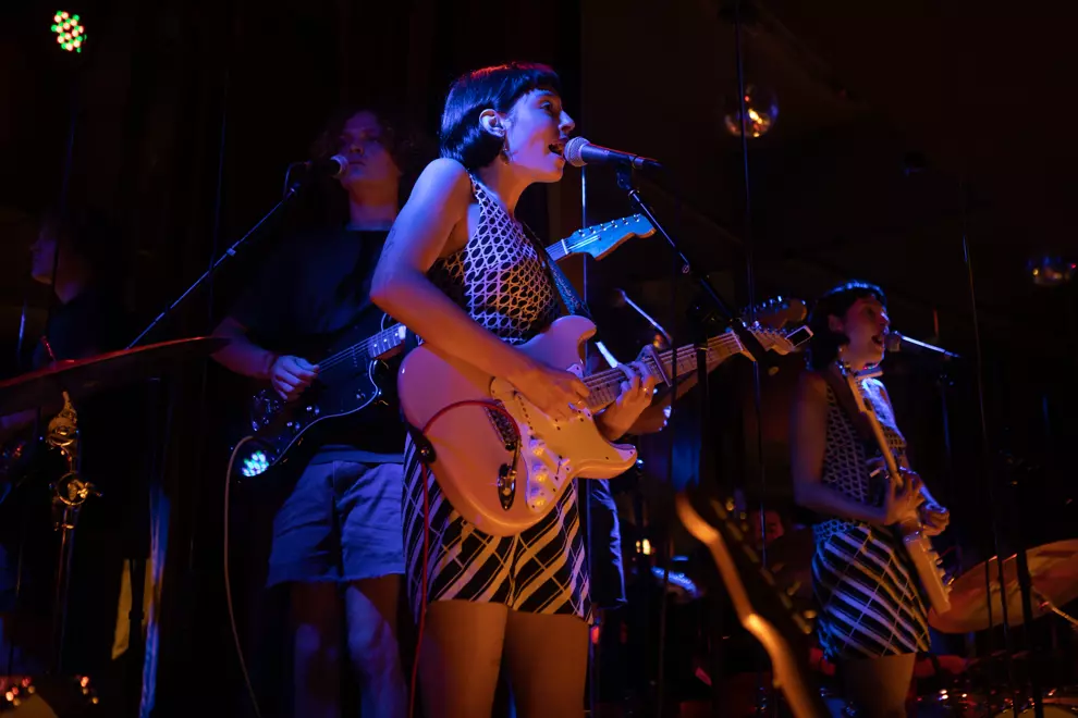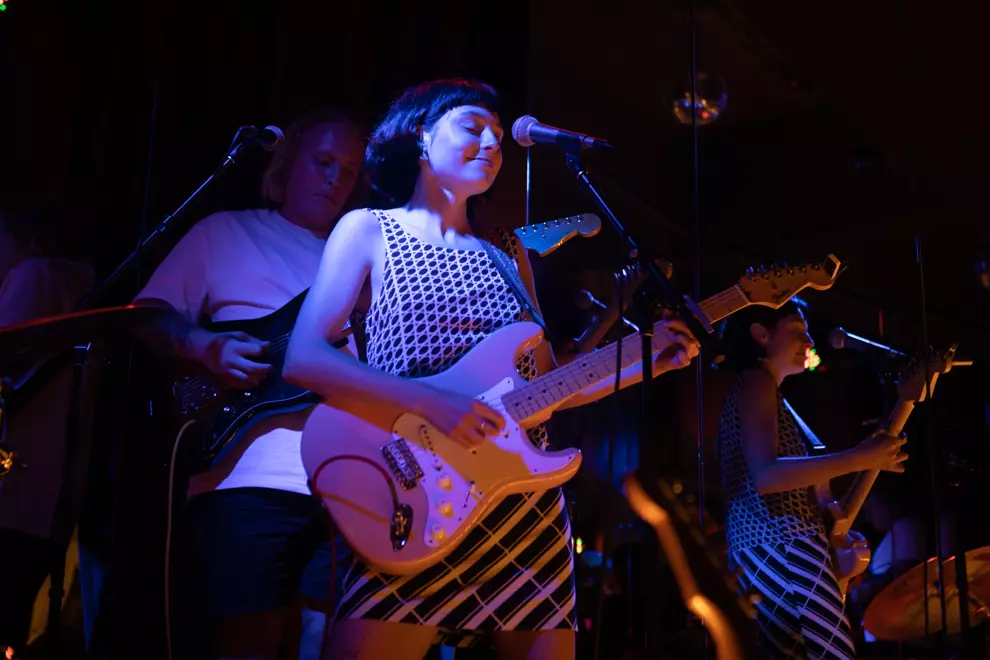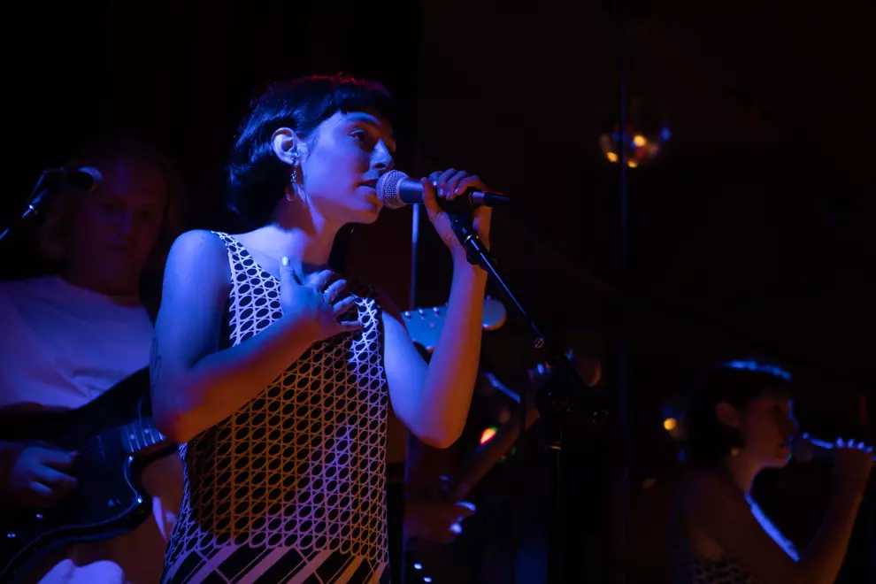 Talking sees keyboardist George Foster taking his spot, not on, but in front of the tiny Golden Age stage. “I can watch you now,” jokes Donnelly as she cheekily watches for mistakes. Following this, the whole band joined in for Lunch and it’s almost comical since the bass player also has to play from the floor.