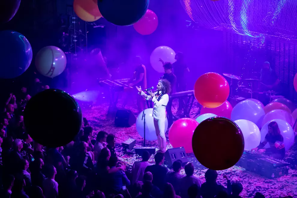 Confetti cannons explode and giant, colourful balloons bounce over the crowd as the band opens with Race For The Prize. The visuals are mouth-wateringly Instagrammable, but the sound is teeth-shatteringly tinny. Coyne’s vocals struggle to be heard over the uneven mix, and when they do surface they’re croaky (and not in the usual good way). However, the band do succeed in giving the room a warm vibe, with punters reaching for balloons and tossing confetti with a childlike abandon.