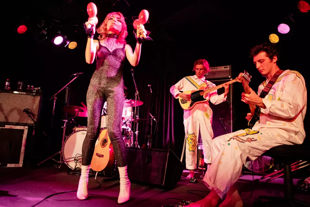 It doesn’t take long for the night to heat up once Nice Biscuit kick off their set. As soon as the two fabulous frontwomen Billie Star and Grace Cuell walk on stage, all eyes are starstruck by their glittery black jumpsuits, matching chokers with long, silver fringes, crescent moon and star earrings and white go-go ankle boots. They take the audience’s breath away with their mesmerising synchronised movements and harmonised vocals. The band's cosmic indie-pop takes everyone on a journey through space and time, and when the Nice Biscuit spaceship departs they leave the crowd in awe.