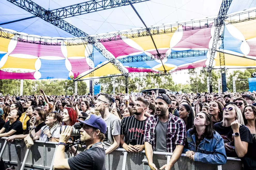 The VeronicasCastlemaine wunderkind KIAN won triple j’s Unearthed High competition back in 2018 and continues to go from strength to strength. He encourages the crowd to move closer to the stage - the ground is soaking wet so punters strategically place themselves on parts of the grass they won’t sink into. The 17-year-old plays tracks from his debut EP, which came out last year, but tells his fans that he owes them some new music and it’ll be coming soon. He shares a taste of some unreleased tracks for us today and it’s a bit different from what we’re used to hearing from him, with his smooth and soulful vocals wrapped around danceable backbeats and jangly rhythms.