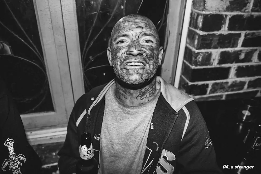 I was having a beer one evening at a venue called Low302 on Crown St in Sydney. I was waiting at the bar to get served and this dude snuck up next to me and tried to order a beer, the bartender shut him off (he was maggot) and he was told to leave the venue. I went out the front soon after and he was smoking a durry and seemed pretty lonely. I asked if I could take a photo if I gave him my beer, the deal was done and this moment was captured. The manager took the beer off him soon after and booted him out again, poor bloke.