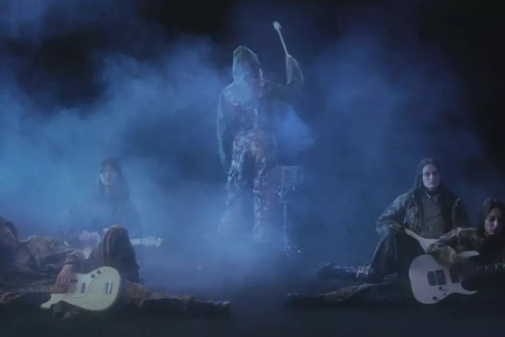 "For this video we tried to imagine a perfect band to play "Called to Ring," and I think we succeeded. The idea was to have a wash of hair, camo, and white guitars all happening in slow motion, with Ariel and I popping in and out as these cold, eyeless theater masks. As we sing in unison on the recording, we thought we should spend the bulk of the video conjoined. Such a pleasure to work on this with everyone, I'm really proud of how it turned out."