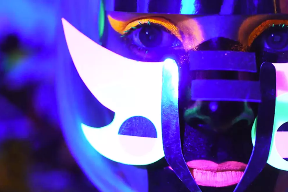 The video for 'Go Back Home' features a radical montage of inventive costumes, clad with bright UV-reactive colours and figures dancing in kaleidoscopic patterns. All together this film clip looks like it's revealing some kind of beautiful life form from another planet, or better yet something living deep beneath the sea in a brilliant display of bioluminescence.