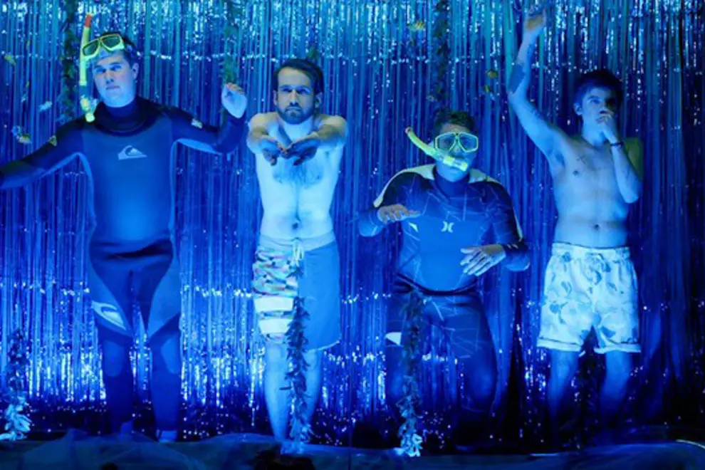 Also viewing scenes of the band as business men and scuba divers (not to mention the hilarious scene of Pitt dressed as a dog as he sings the more hoarse vocals), these scenes are soon interrupted by unexpected guests, which causes the whole clip to turn on its head.